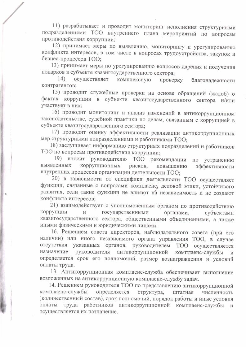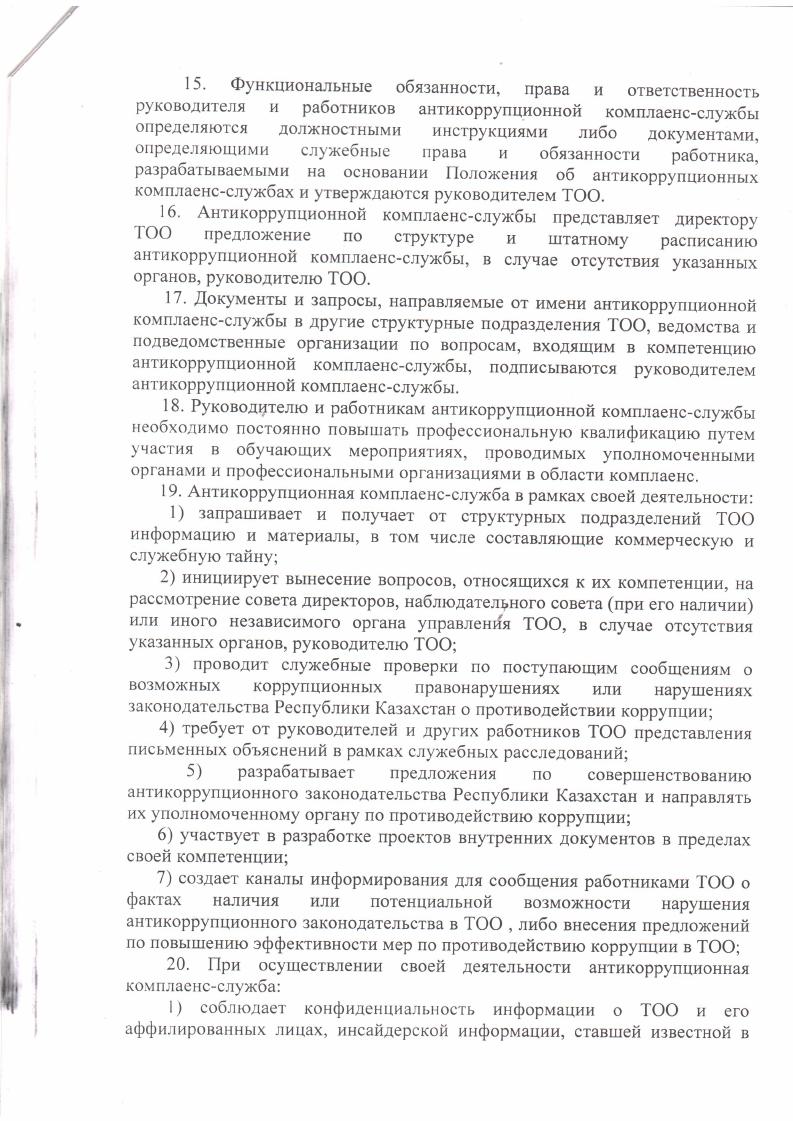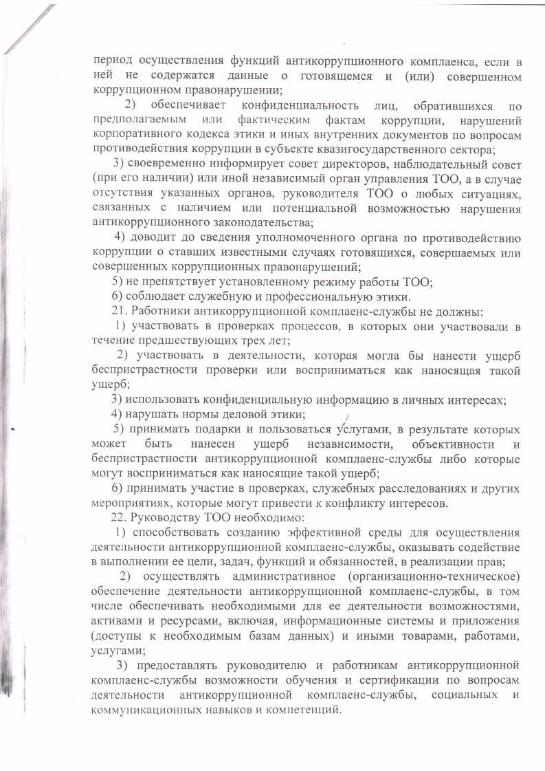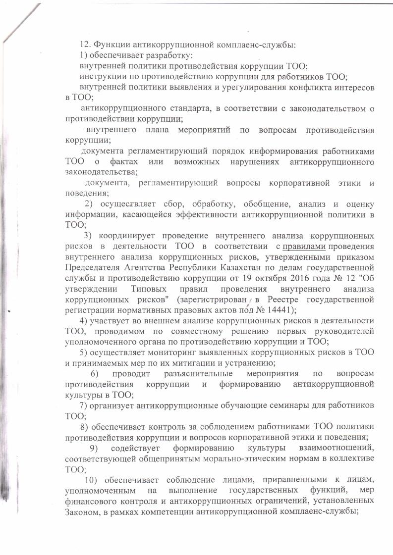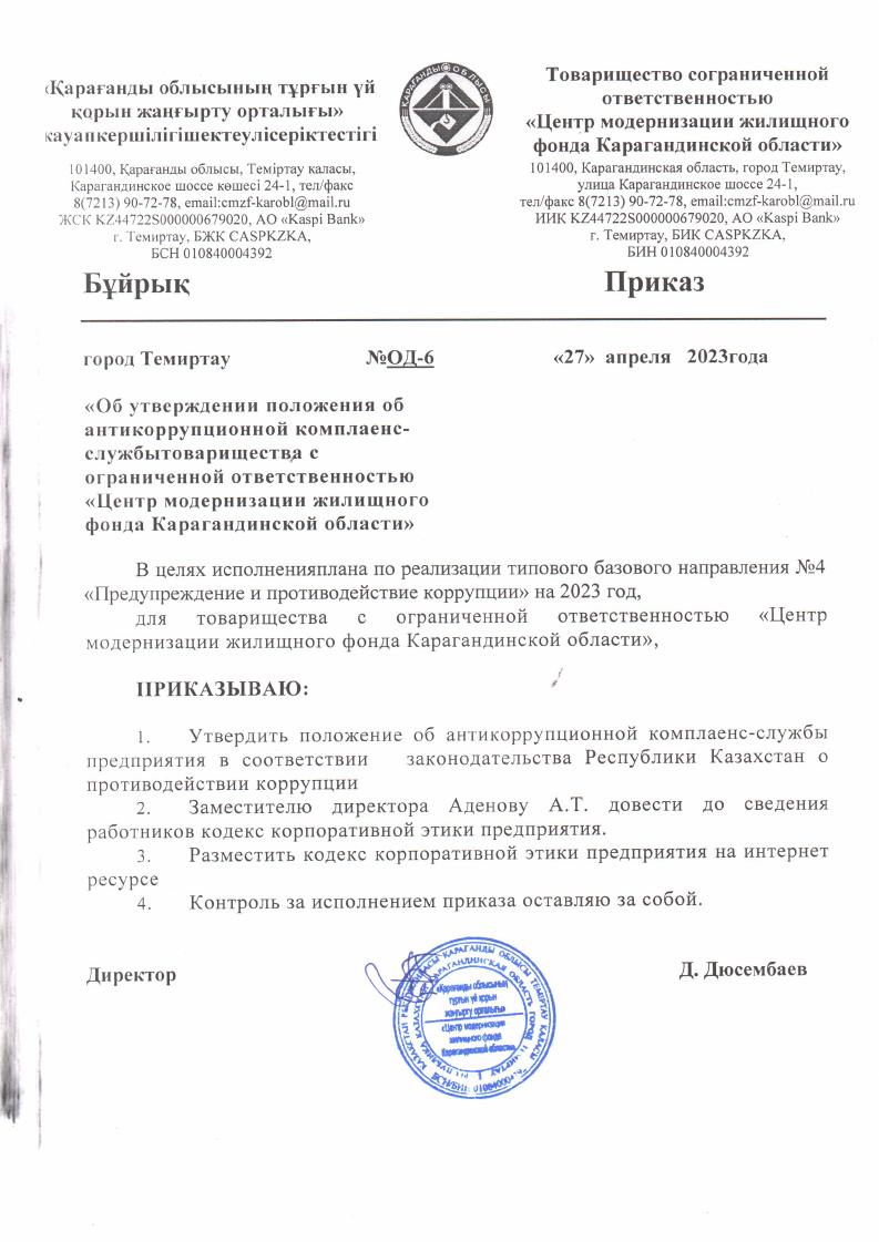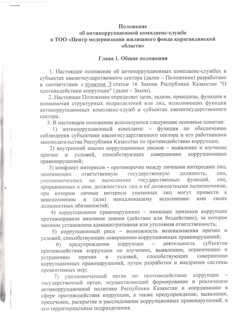 Об утверждении положения об антикоррупционной комплаенс-службы ТОО Центр модернизации жилищного фонда Карагандинской области